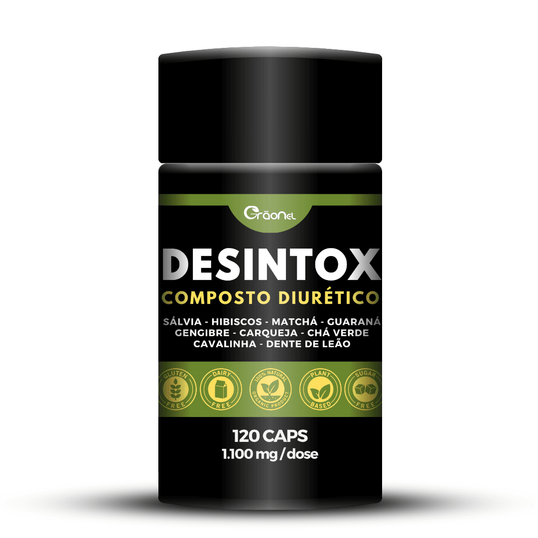 DESINTOX é um diurético natural que promove a eliminação de toxinas, redução de líquidos e aumento da vitalidade.